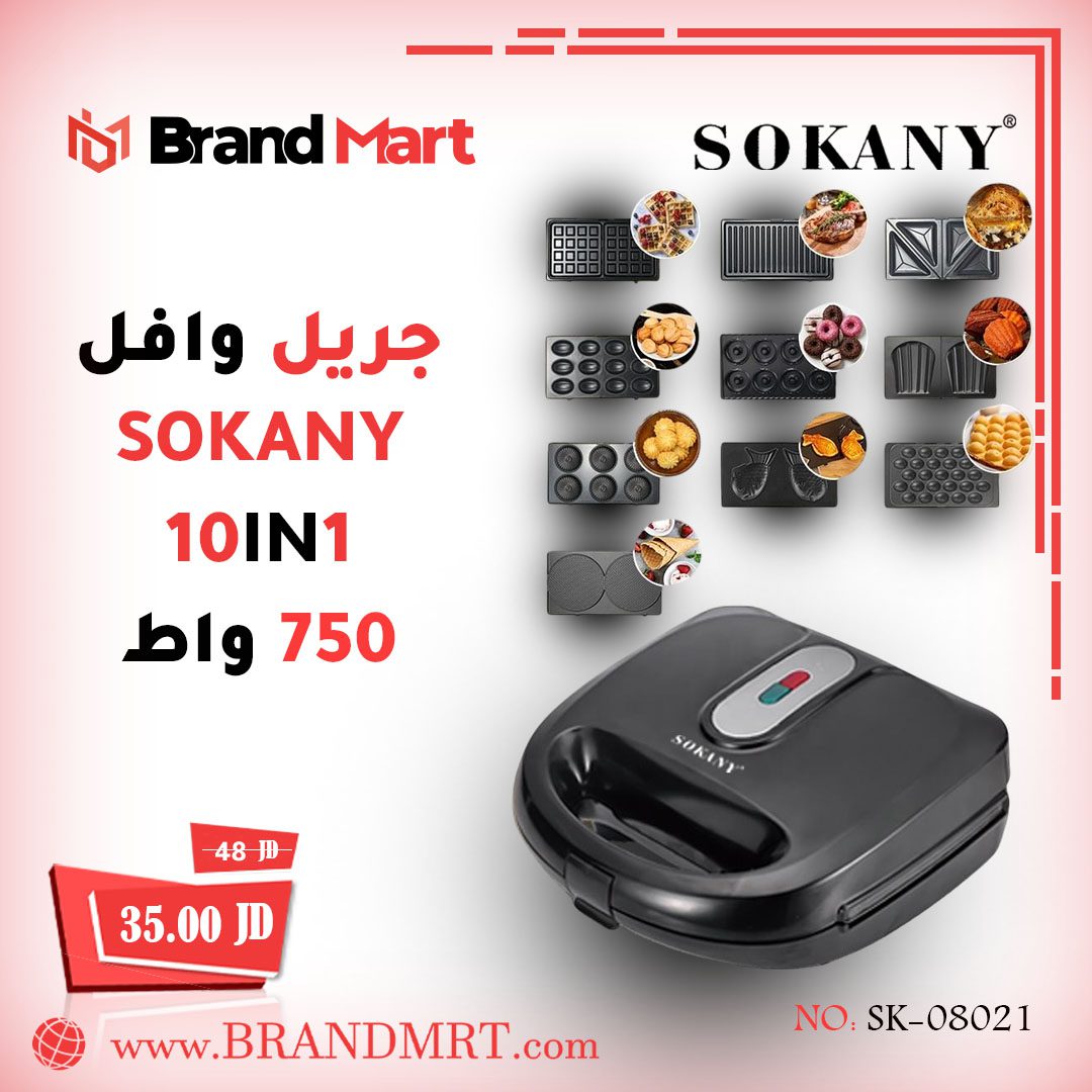 جريل وافل متعدد الاستخدامات نوع سوكاني (10 في 1)، 750 واط